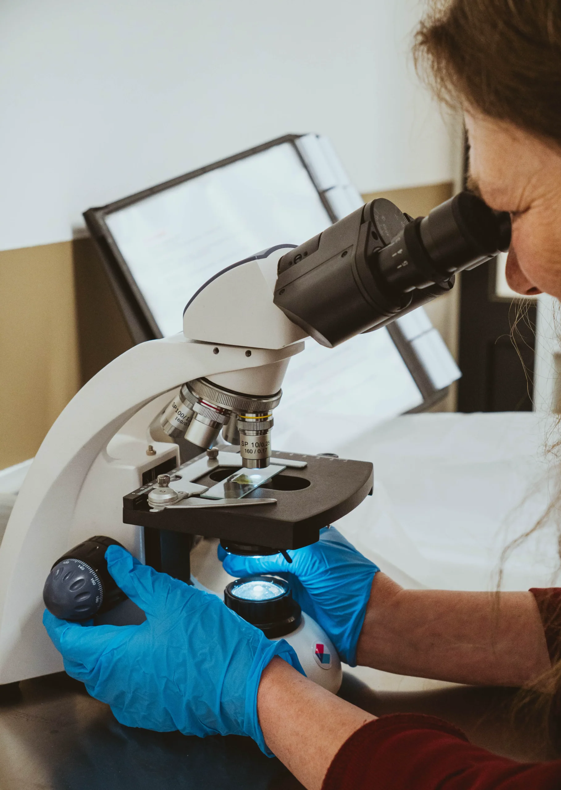 Grâce à la technologie moderne, les images du microscope peuvent être transmises directement à notre vétérinaire afin de vérifier les diagnostics ou d’ajuster les traitements.